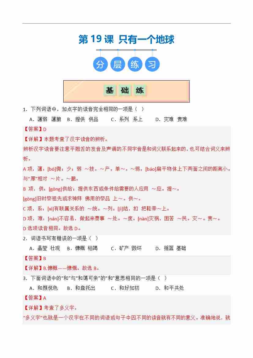 第18课《绚丽的“彩虹”》(分层练习)解析版