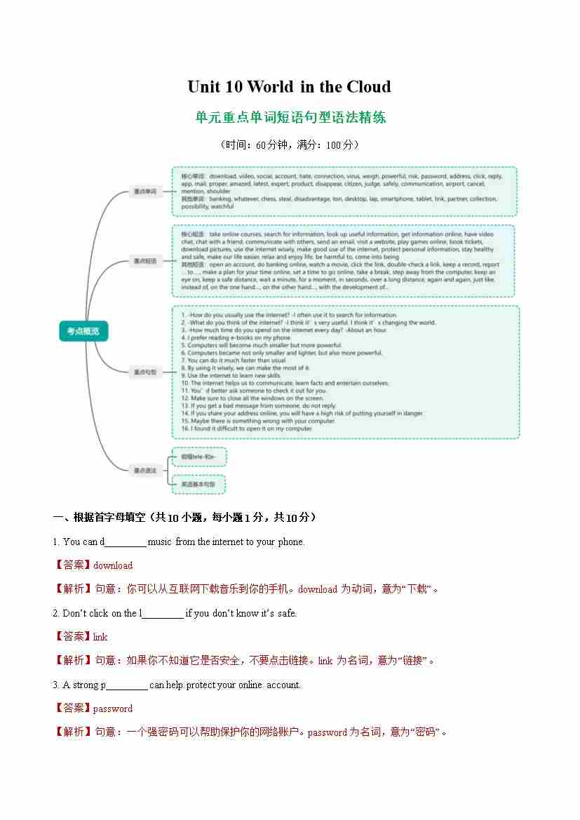 Unit 10 World in the Cloud 单词短语句型语法(教材考点精练)(解析版)