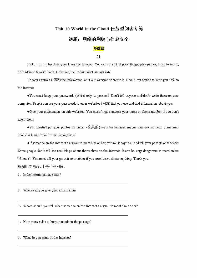 Unit 10 World in the Cloud(任务型阅读专练)(原卷版)