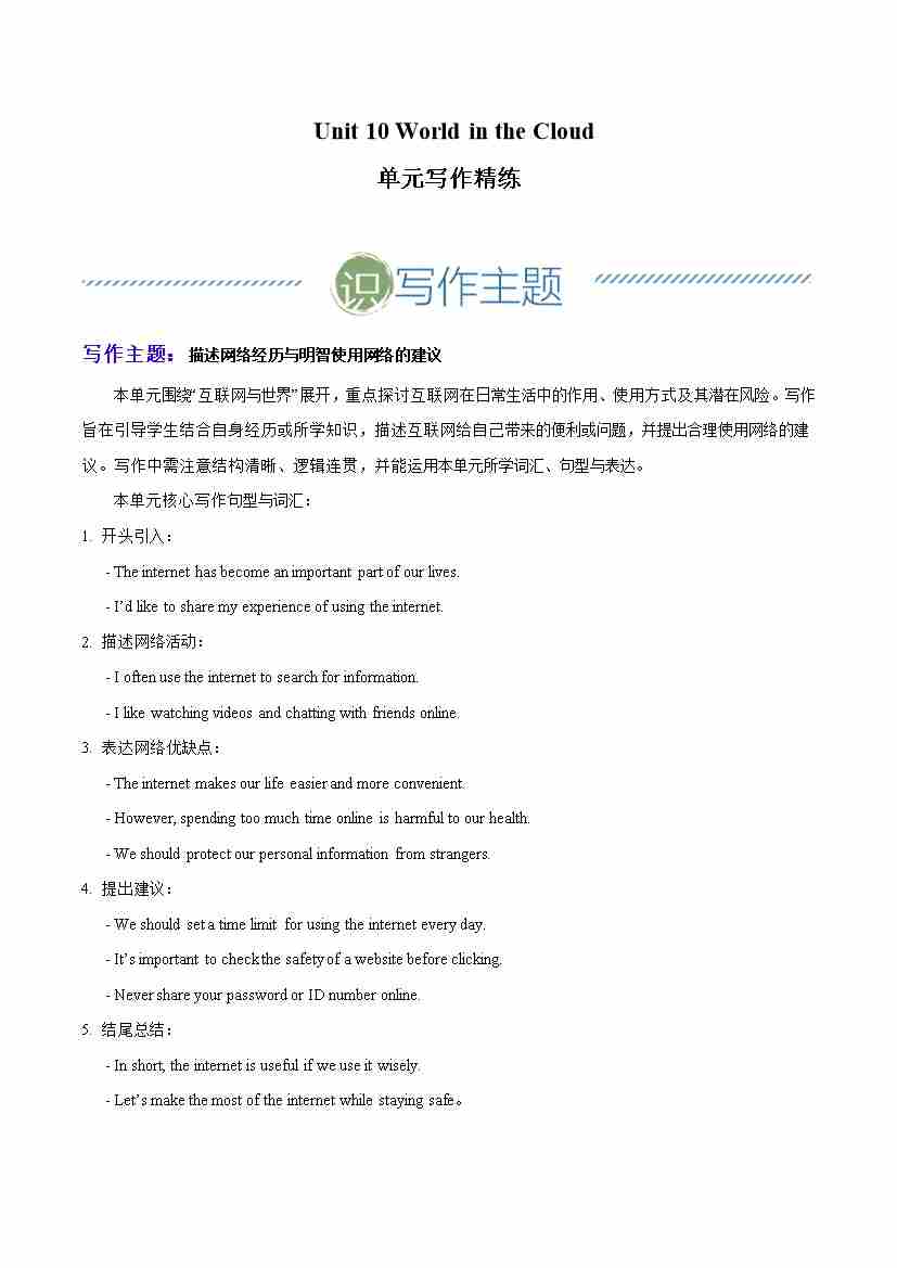 Unit 10 World in the Cloud(单元写作精练)(原卷版)