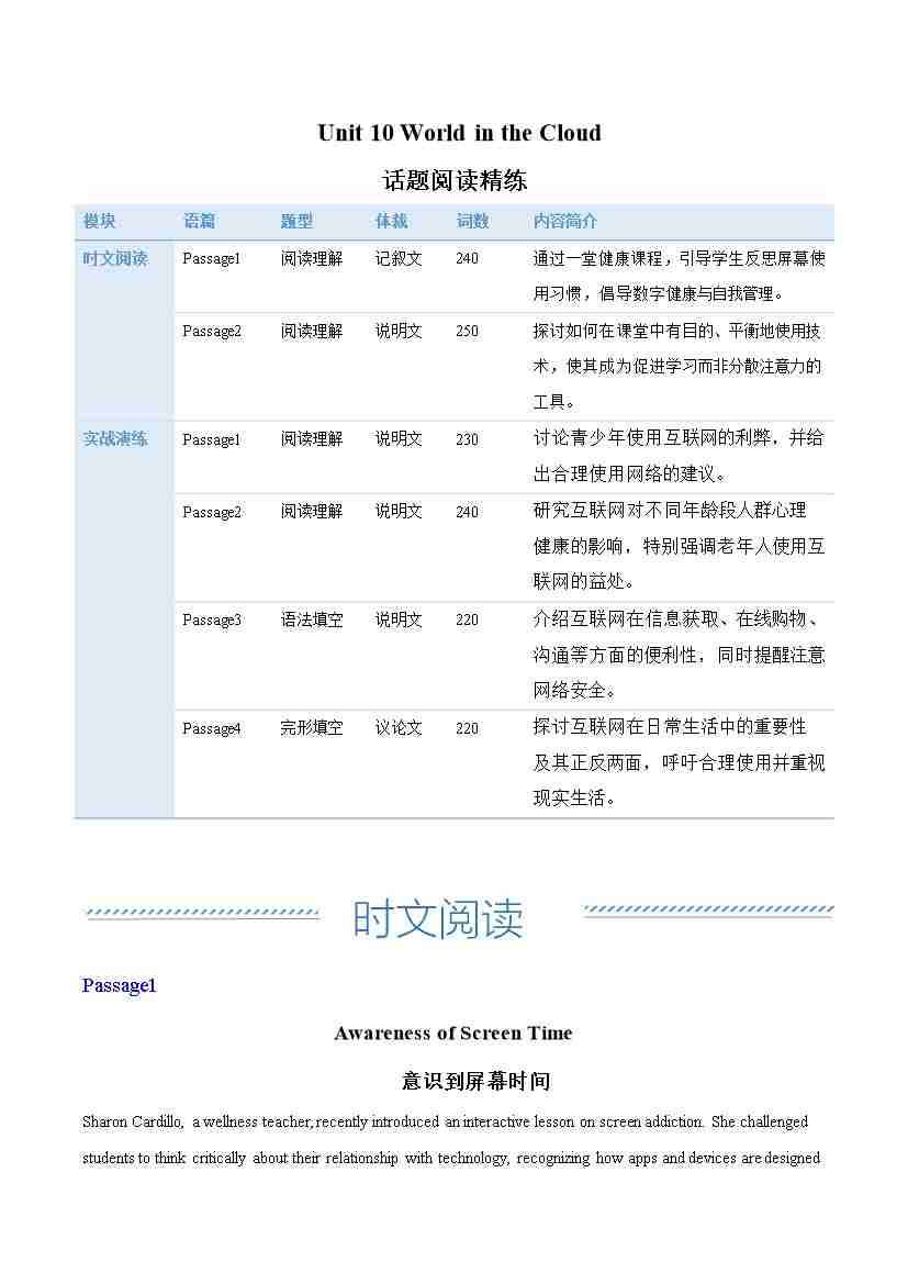 Unit 10 World in the Cloud(话题阅读精练)(原卷版)