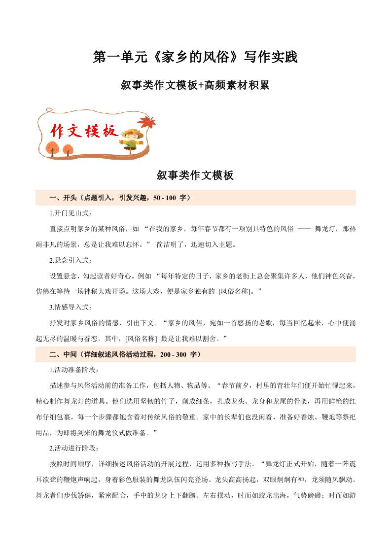 专题02 叙事类作文模板高频素材积累