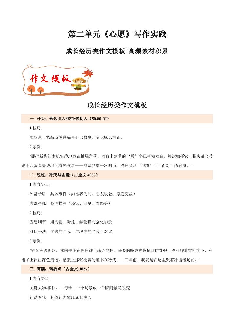 专题06 成长经历类作文模板高频素材积累