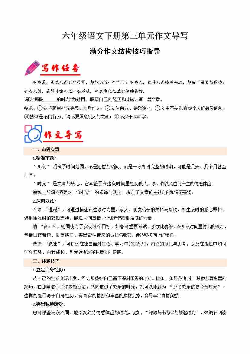 专题12 单元作文导写(满分作文结构技巧指导)