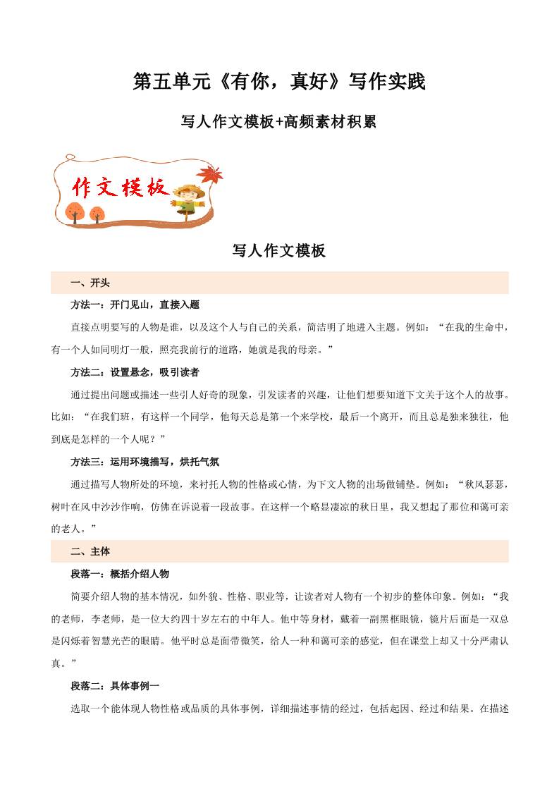 专题14 写人作文模板高频素材积累