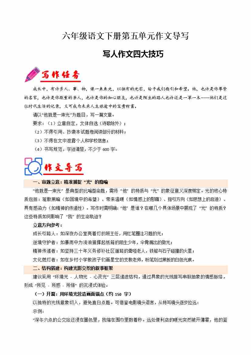 专题16 单元作文导写(写人作文四大技巧)