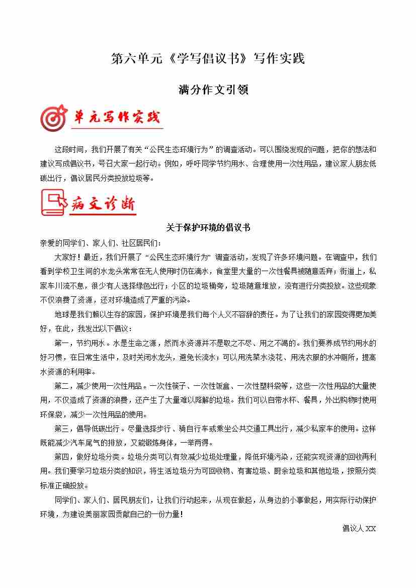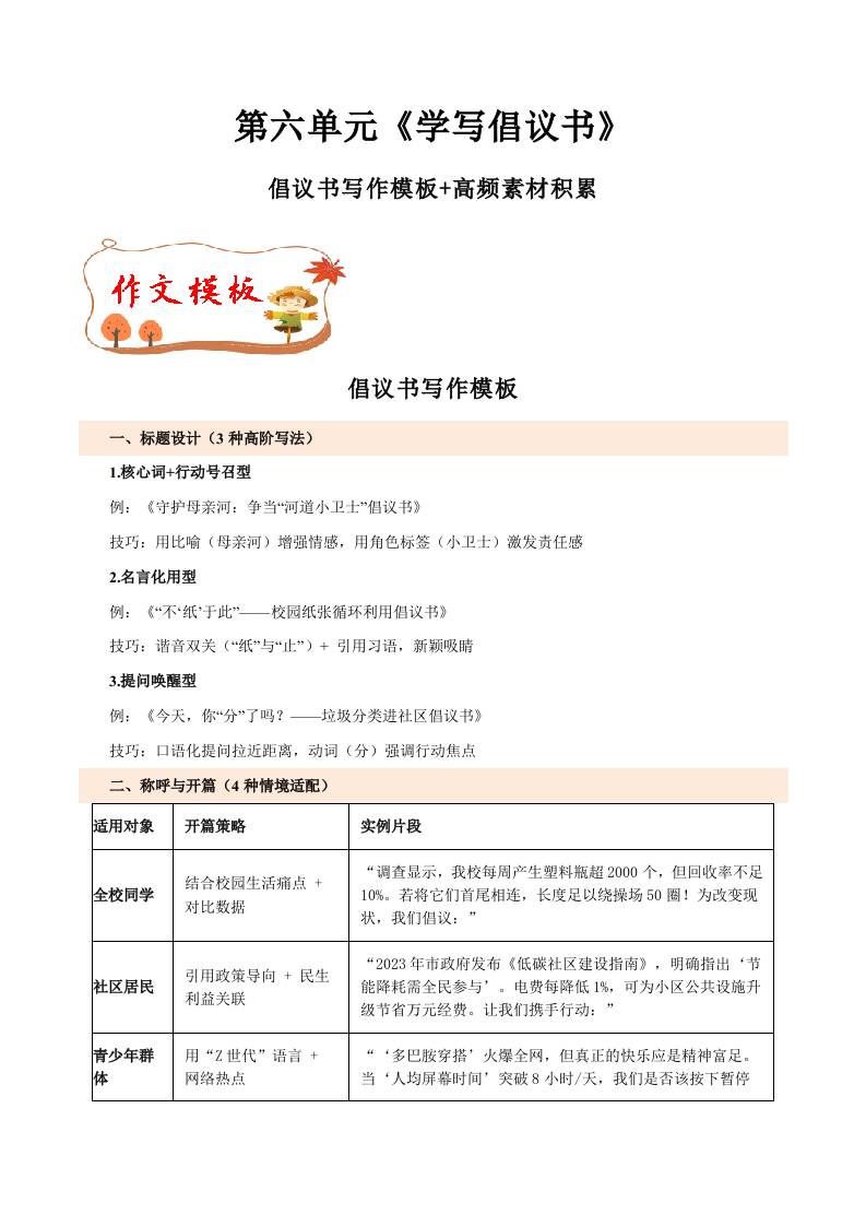 专题18 倡议书写作模板高频素材积累