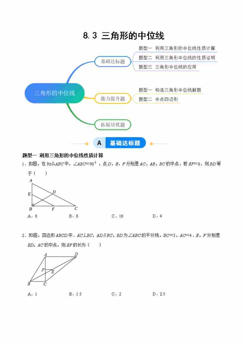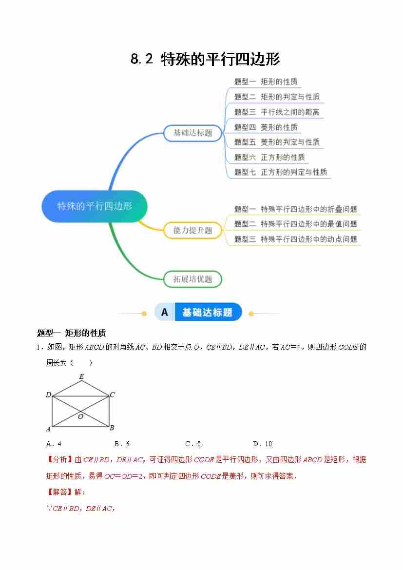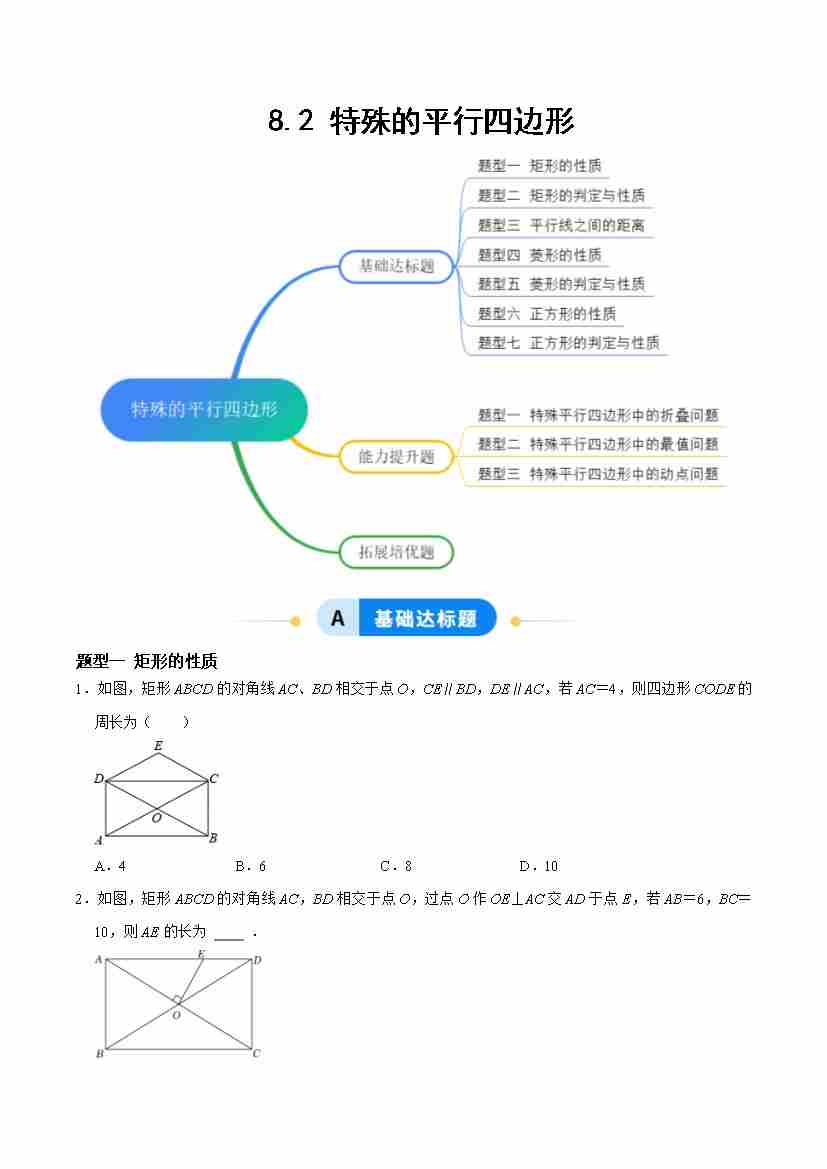 8.2 特殊的平行四边形(题型专练)(原卷版)