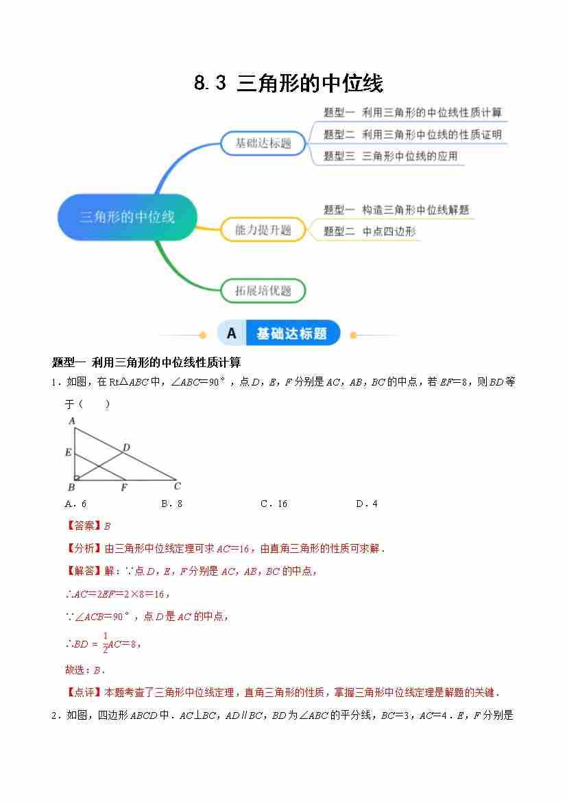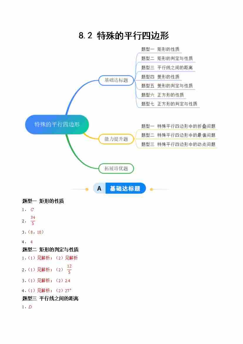 8.2 特殊的平行四边形(题型专练)(答案版)