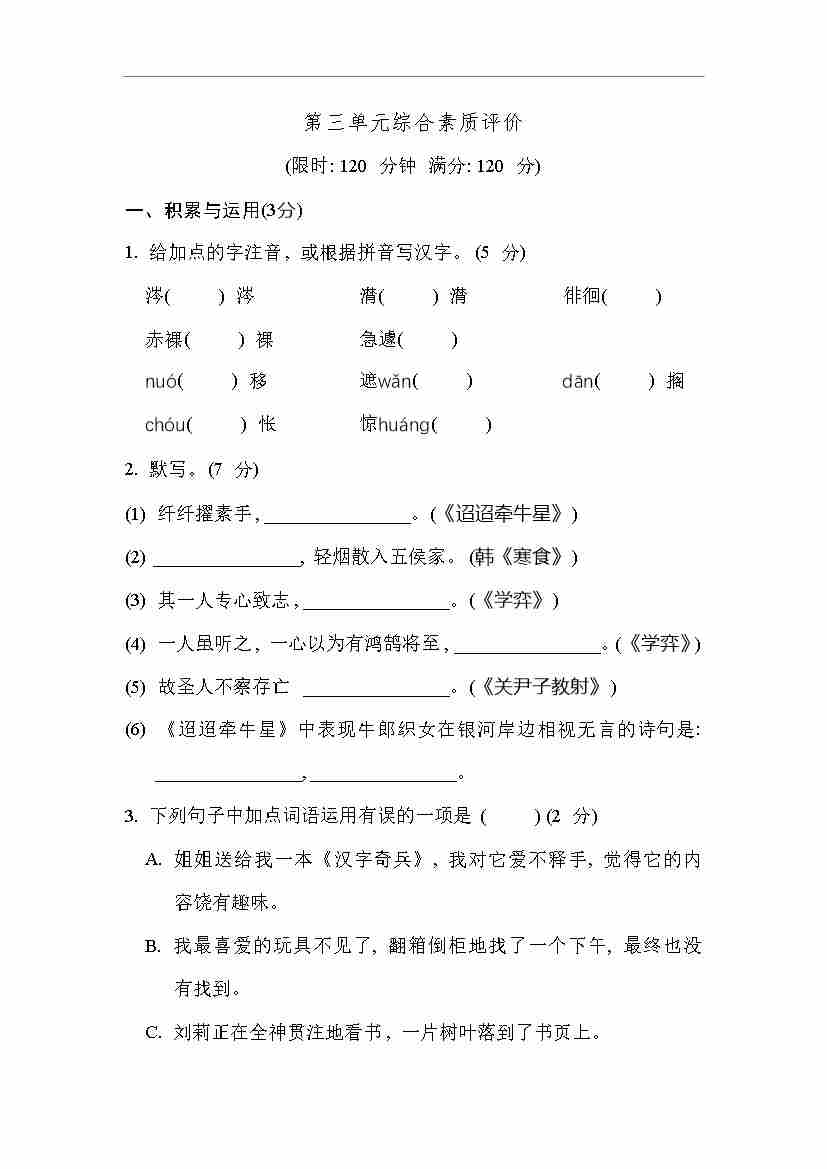 第3单元综合素质评价卷(含答案)人教版(五四制)