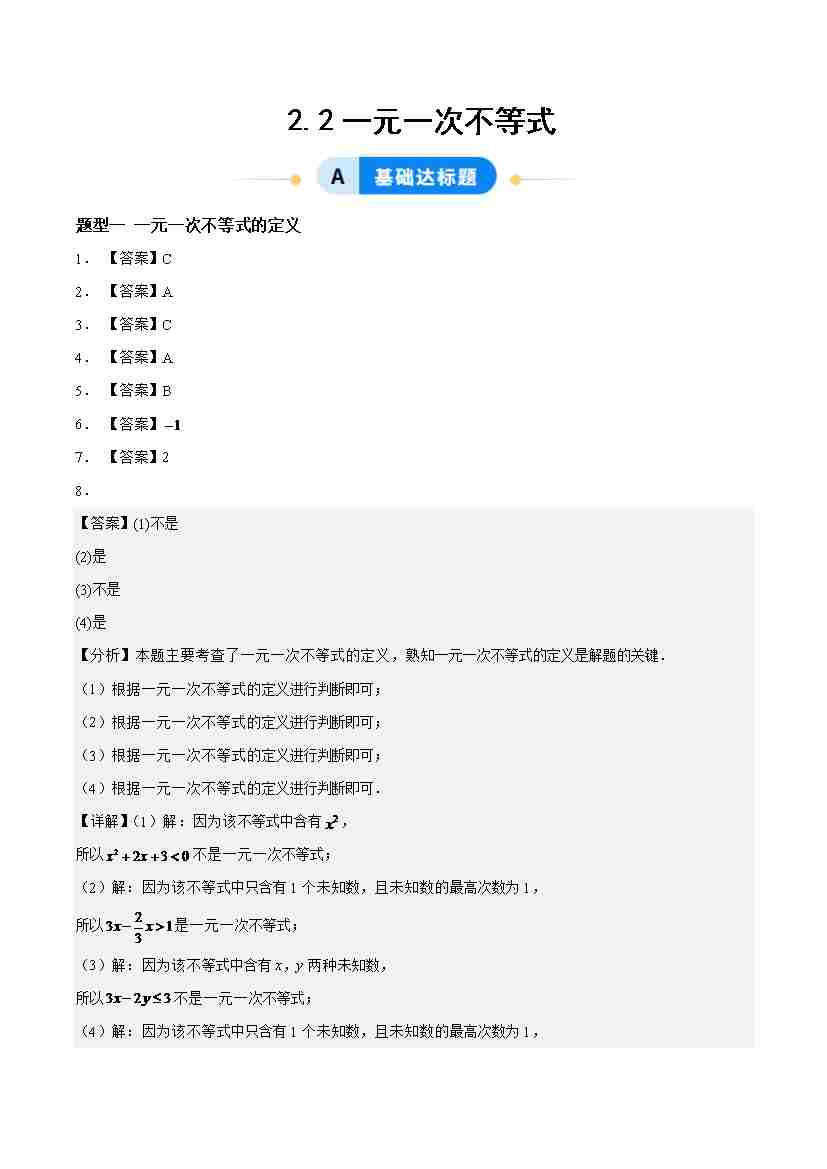 2.3一元一次不等式与一次函数(题型专练)(答案版)