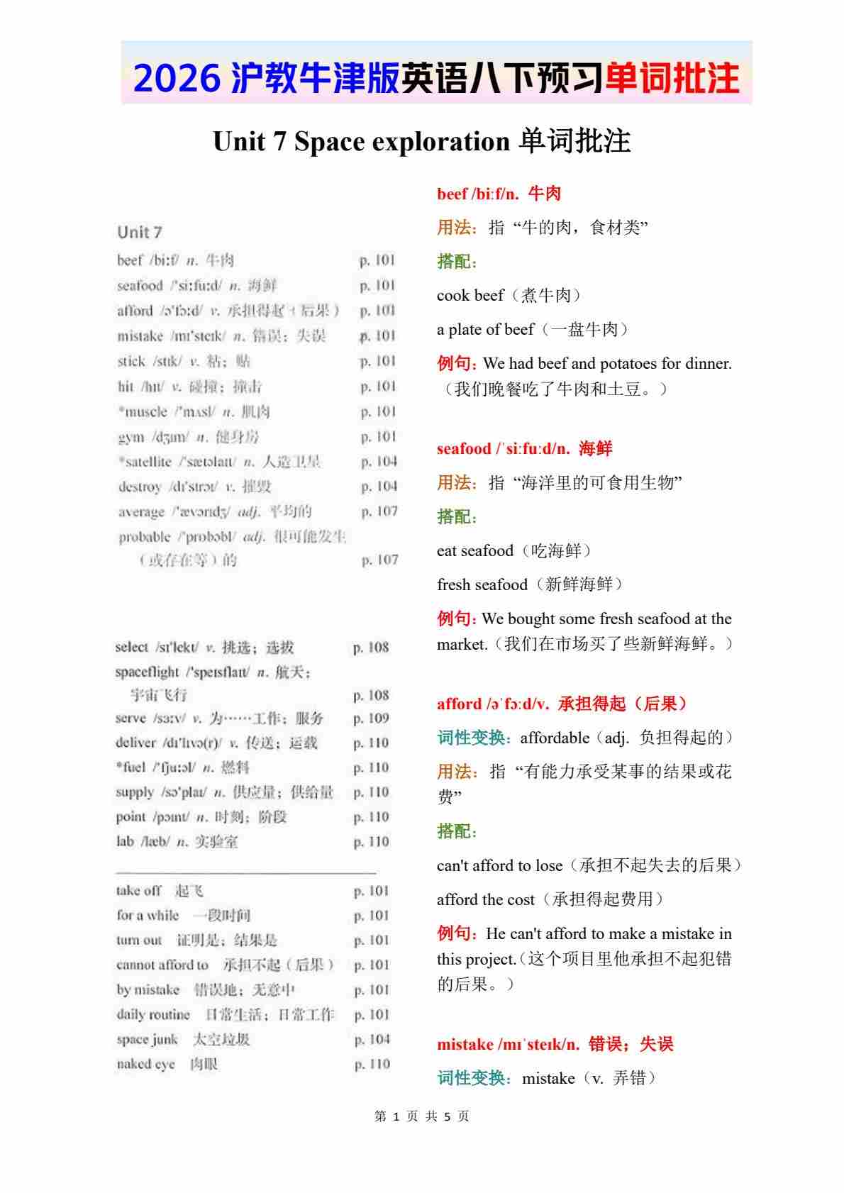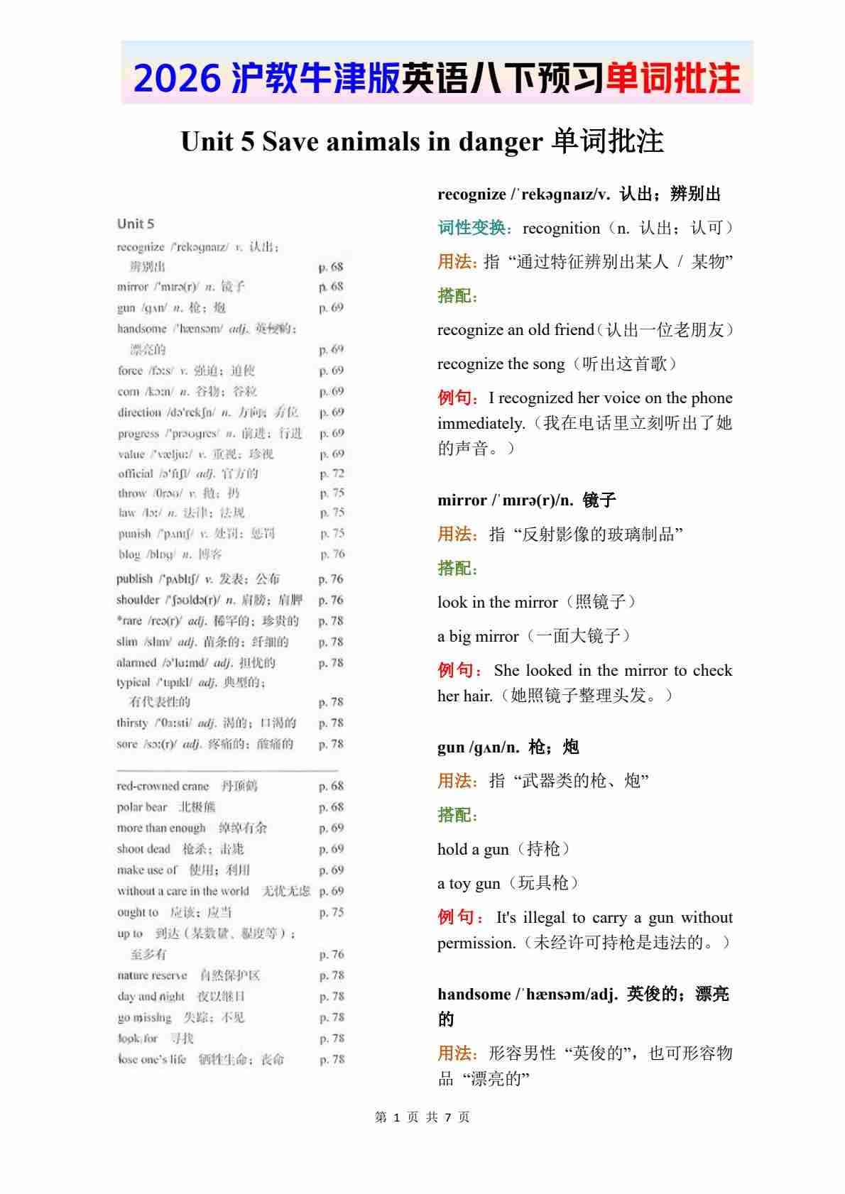 2026春沪教牛津版英语八下单元重点知识Unit 7