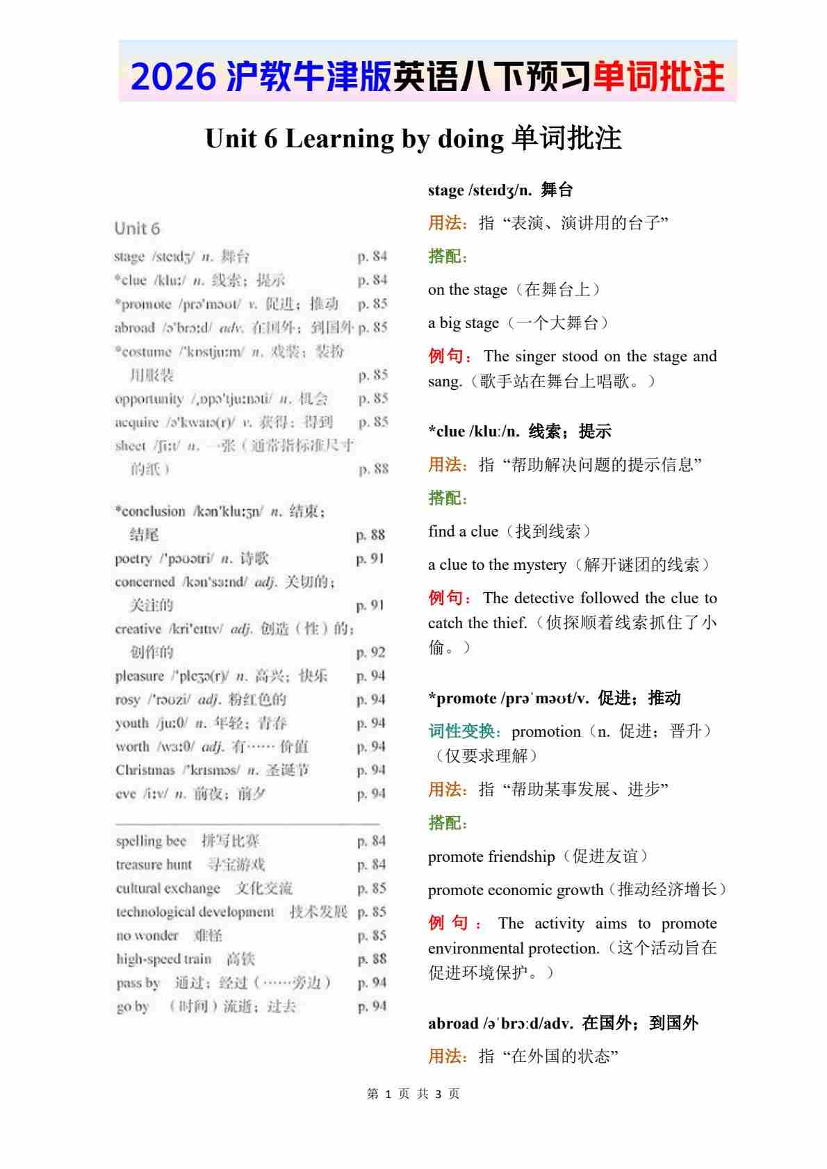 2026春沪教牛津版英语八下单元重点知识Unit 6