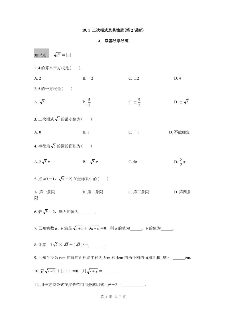 19.1 二次根式及其性质(第2课时) 知识点导学导练 2025-2026学年人教版数学八年级下册