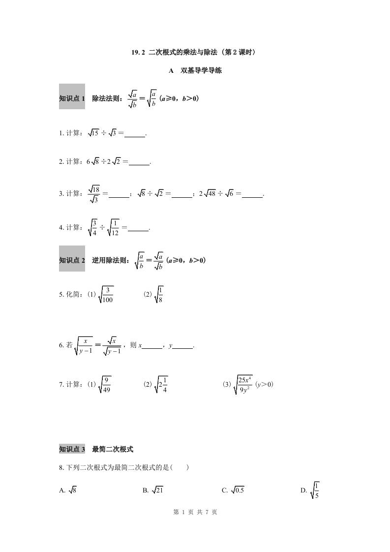 19.2 二次根式的乘法与除法 (第2课时〉 知识点导学导练 2025-2026学年人教版数学八年级下册