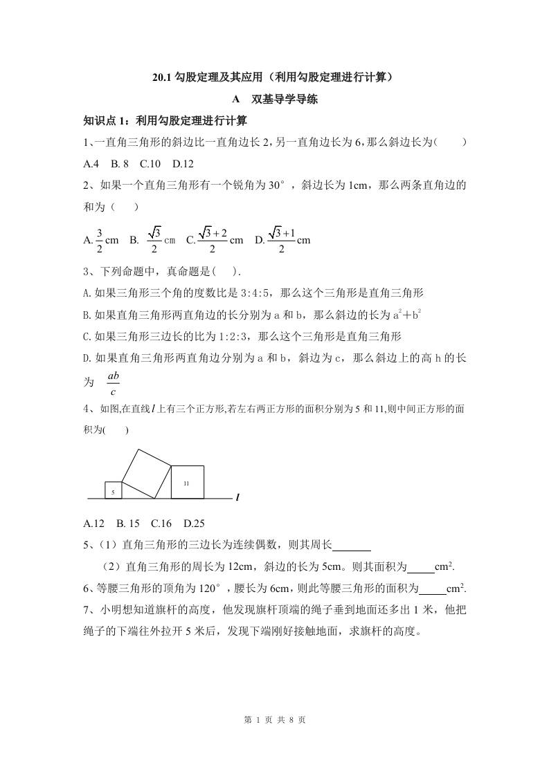 20.1 勾股定理及其应用(利用勾股定理进行计算) 知识点导学导练 2025-2026学年人教版八年级数学下册