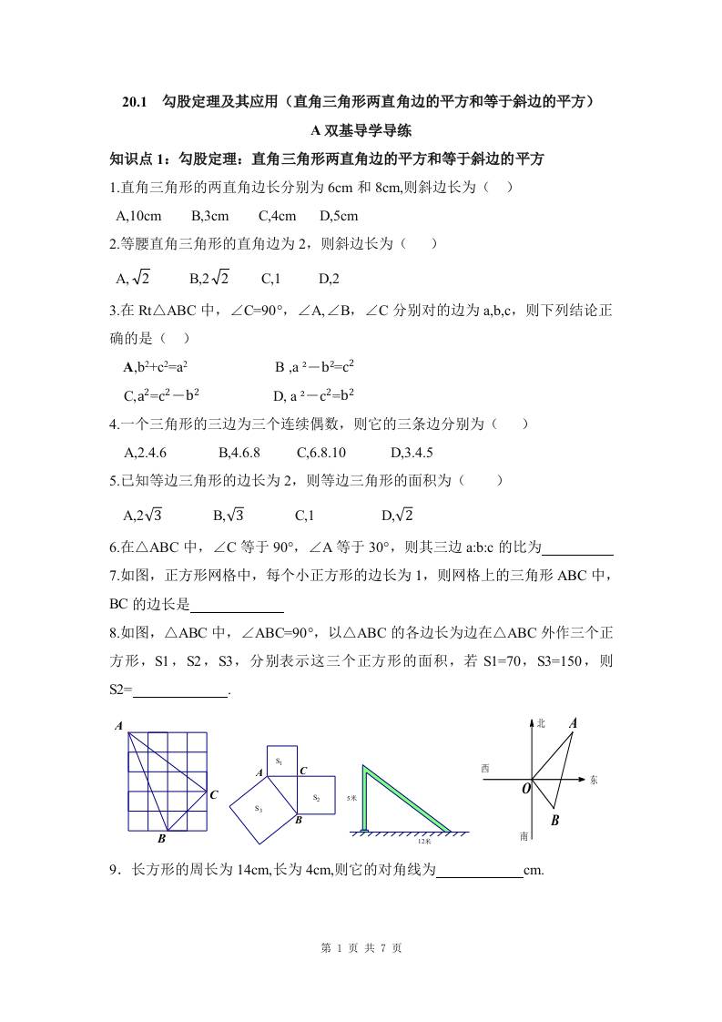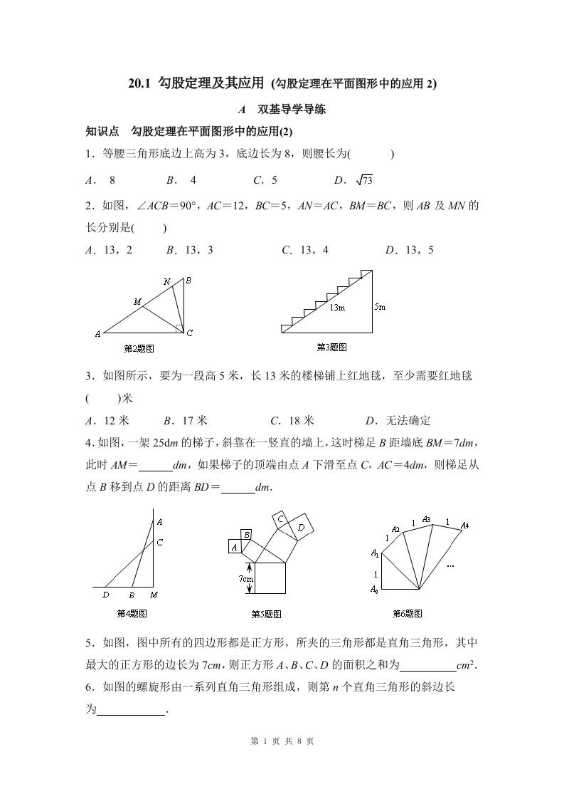 20.1勾股定理及其应用 同步练习 2025--2026学年人教版八年级数学下册