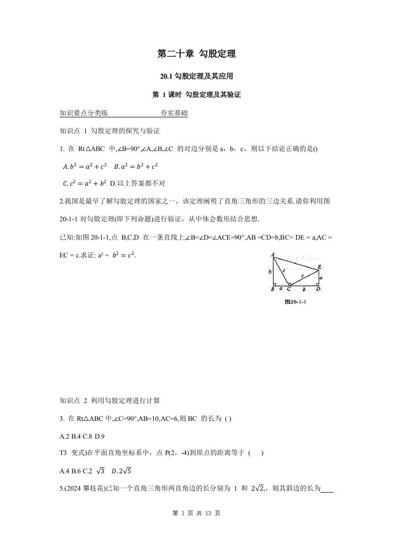 20.1 勾股定理及其应用 知识点导学导练 2025-2026学年 人教版八年级下册数学