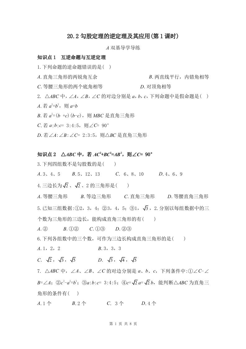 20.2 勾股定理的逆定理及其应用(第1课时) 知识点导学导练 2025-2026学年 人教版八年级下册数学