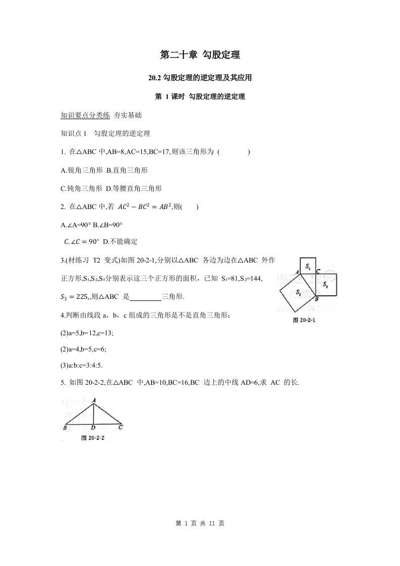 20.2 勾股定理的逆定理及其应用 同步练习 2025--2026学年人教版八年级数学下册