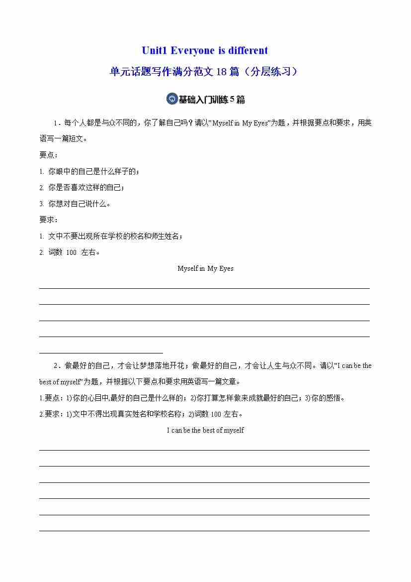 Unit1 Everyone is different 单元话题写作满分范文18篇(分层练习)(原卷版)