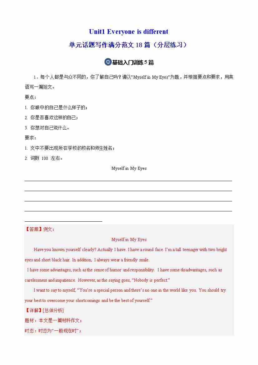 Unit1 Everyone is different 单元话题写作满分范文18篇(分层练习)(解析版)