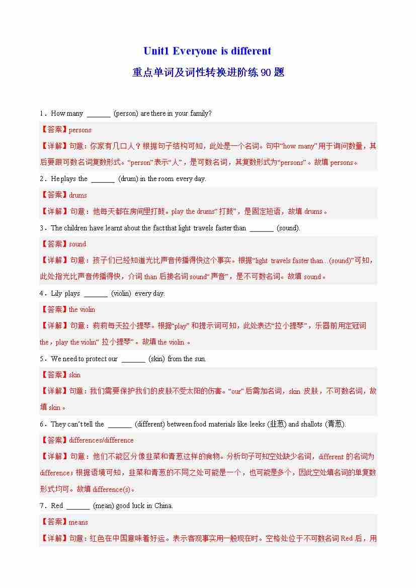 Unit1 Everyone is different 重点单词及词性转换进阶练90题(分层练习)(解析版)