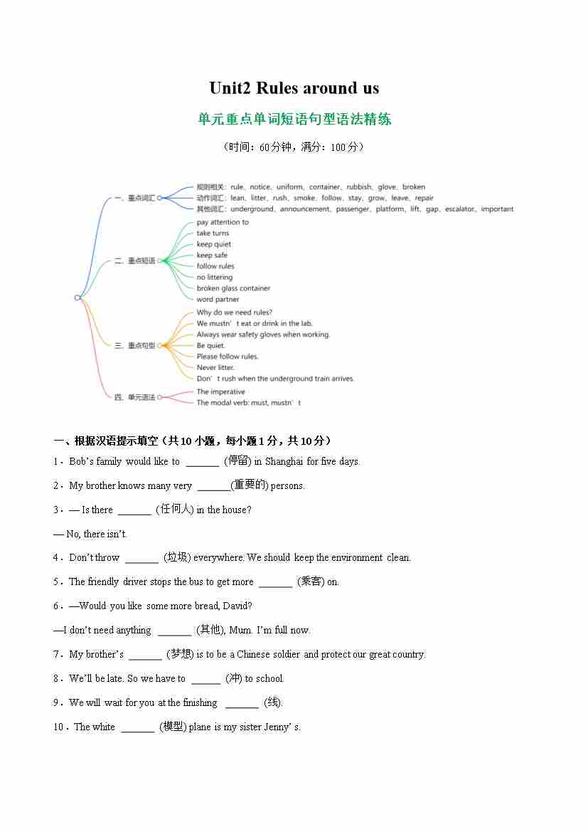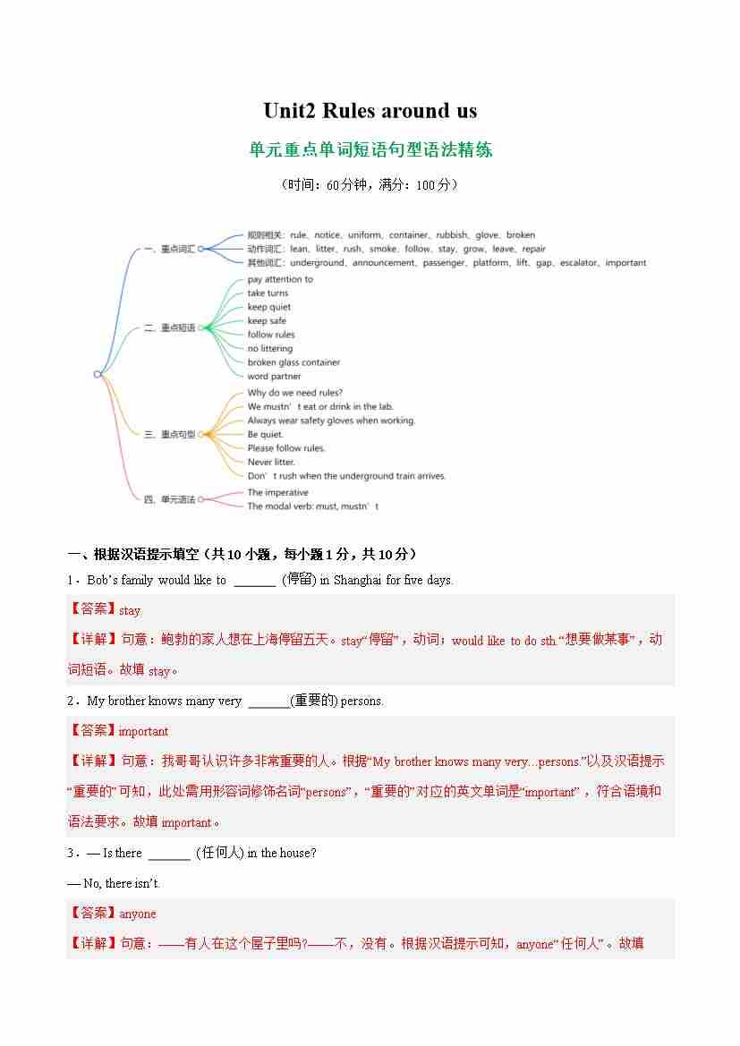Unit2 Rules around us 单词短语句型语法(教材考点精练)(解析版)
