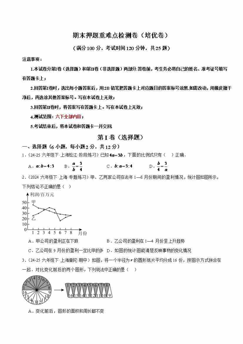 期末押题重难点检测卷(培优卷)(考试范围:沪教版六下全部内容)-(沪教版2024)(学生版)