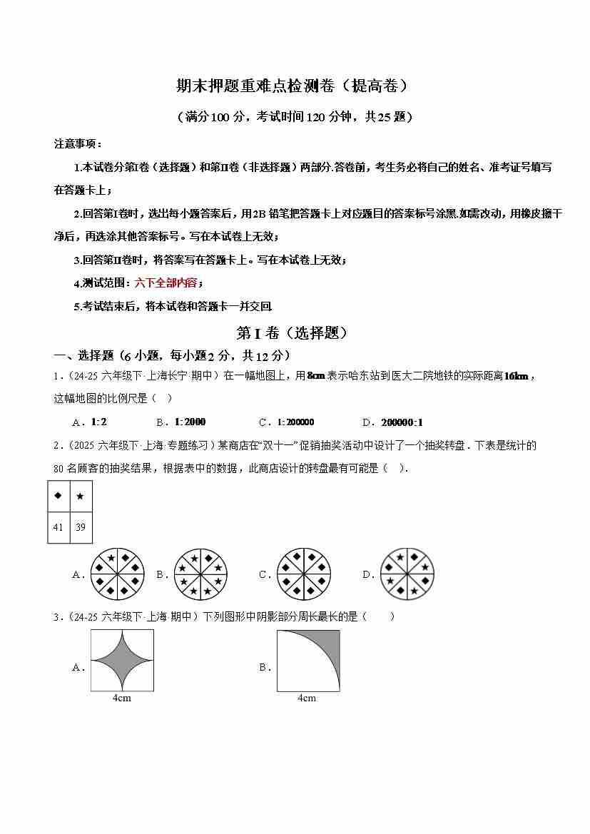 期末押题重难点检测卷(提高卷)(考试范围:沪教版六下全部内容)-(沪教版2024)(学生版)