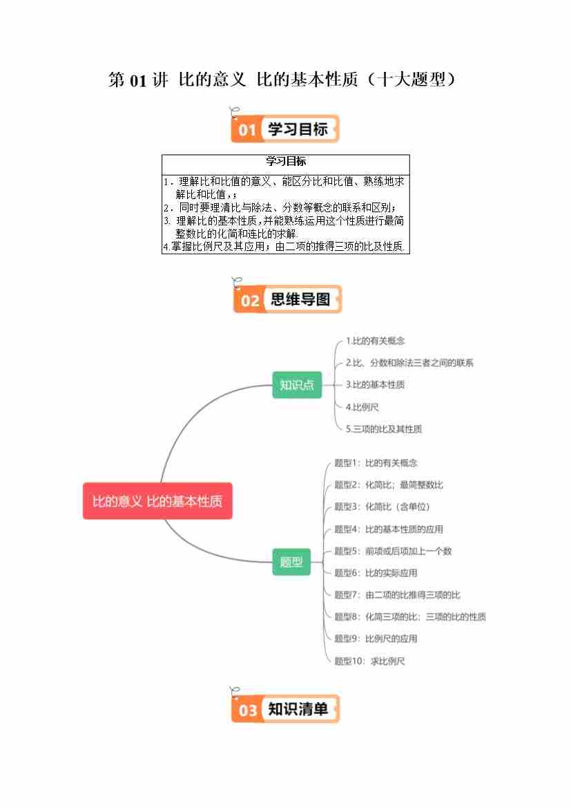 第01讲 比的意义 比的基本性质(十大题型)(学生版)