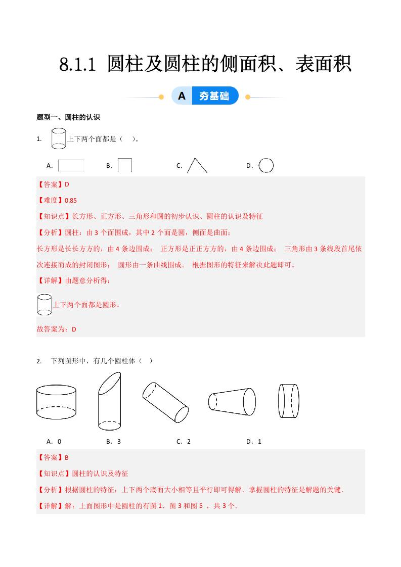 8.1.1 圆柱及圆柱的侧面积、表面积(7大题型提分练)(解析版)