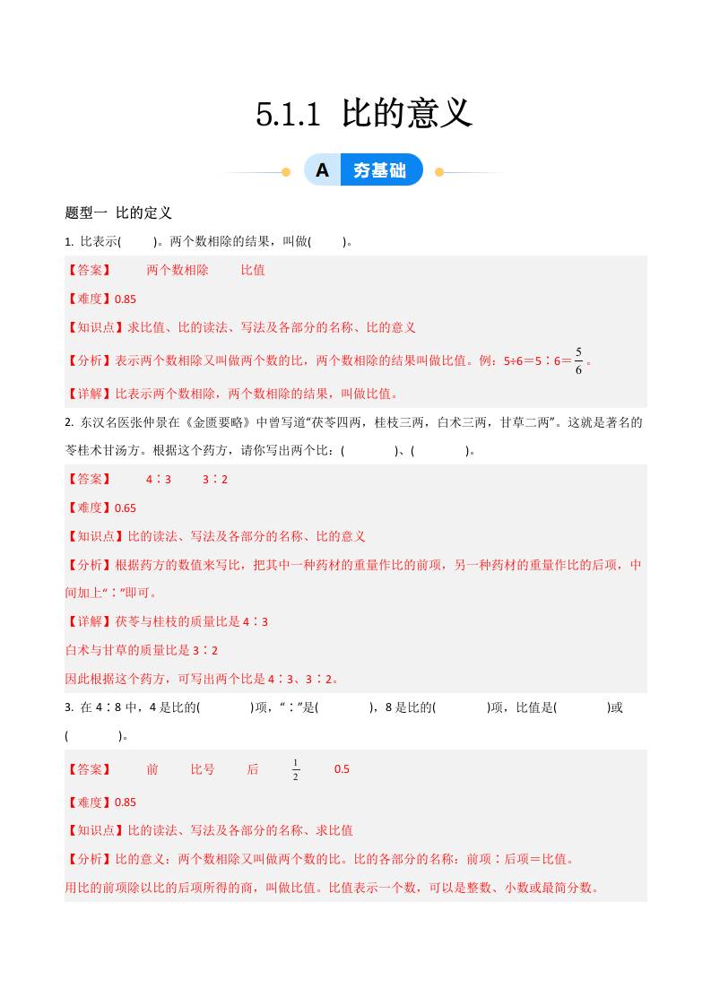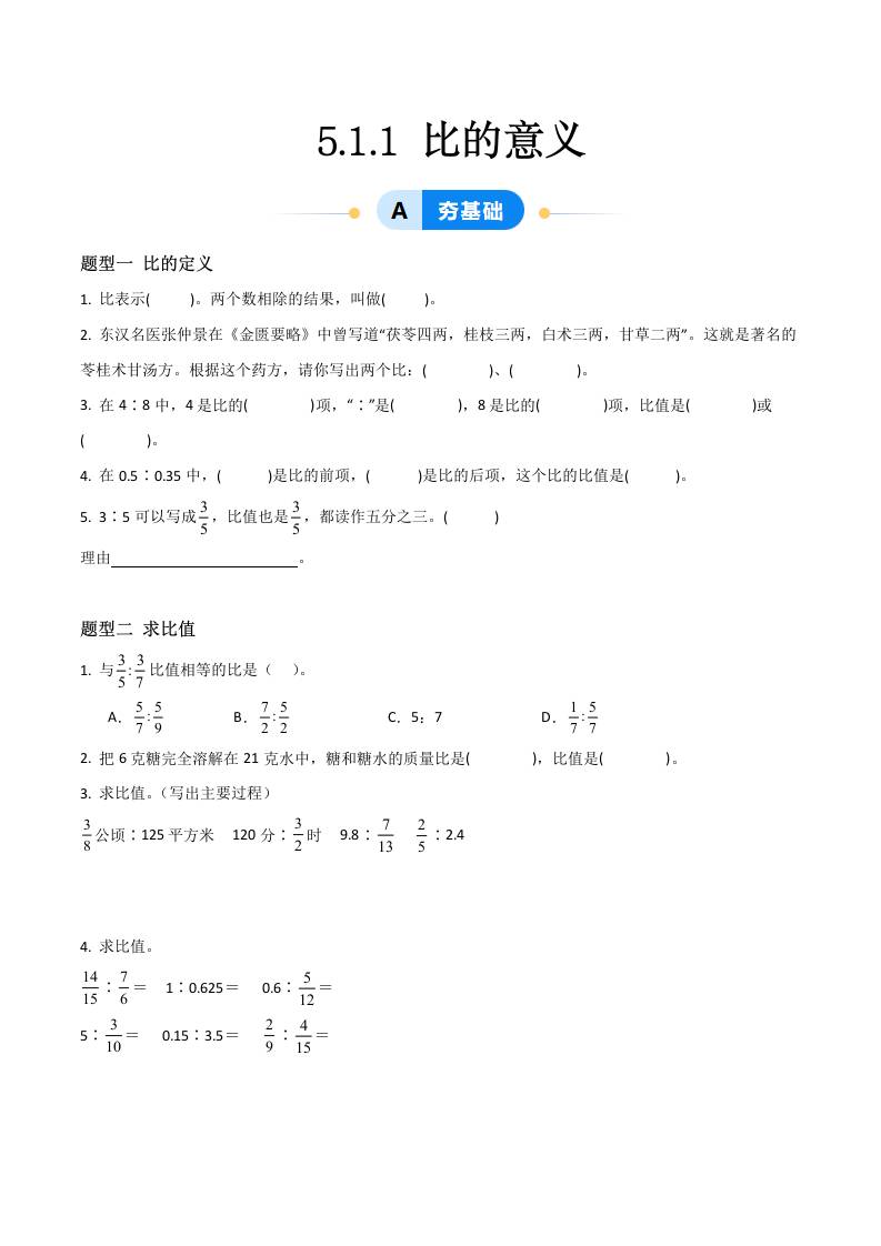 5.1.1 比的意义(5大题型提分练)(原卷版)