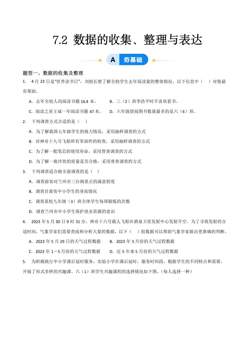 7.2 数据的收集、整理与表达(4大题型提分练)(原卷版)