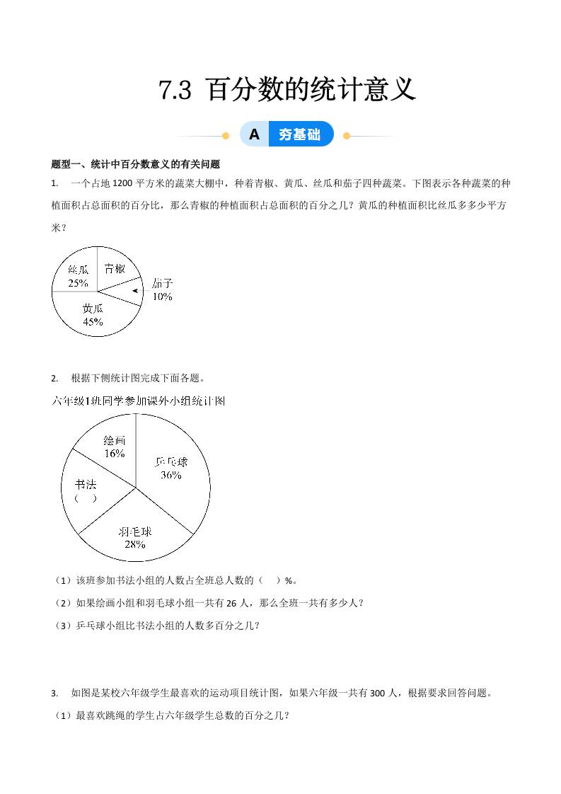 7.3 百分数的统计意义(3大题型提分练)(原卷版)
