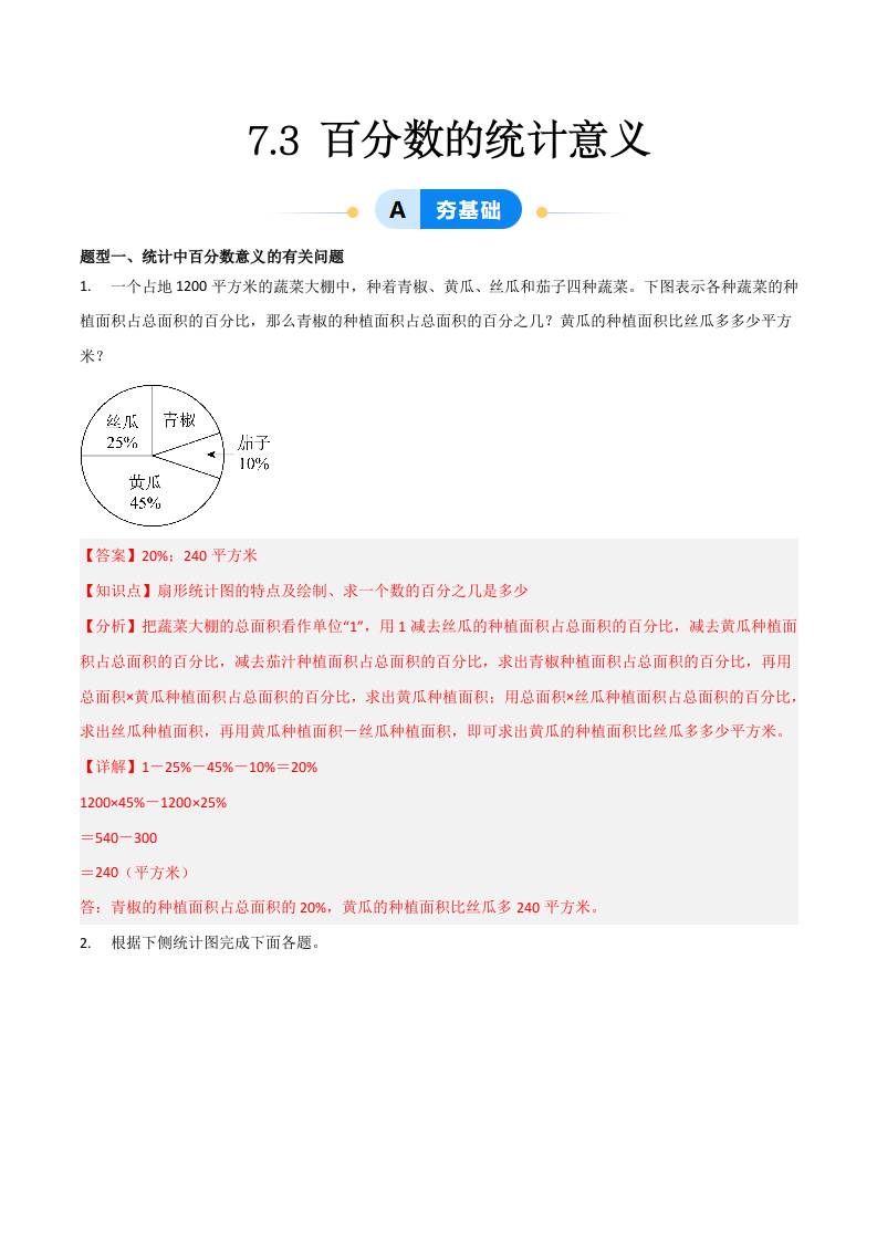 7.3 百分数的统计意义(3大题型提分练)(解析版)