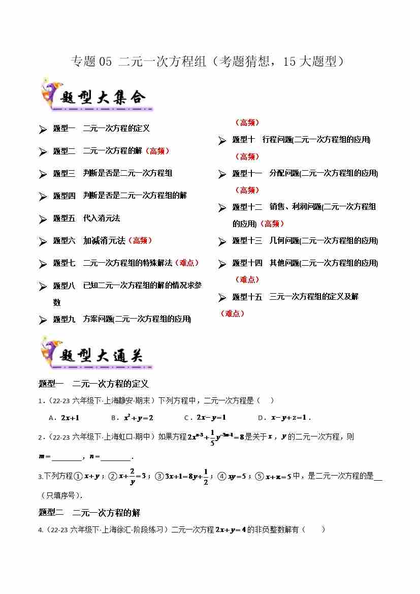专题05 二元一次方程组(考题猜想15大题型)(学生版)
