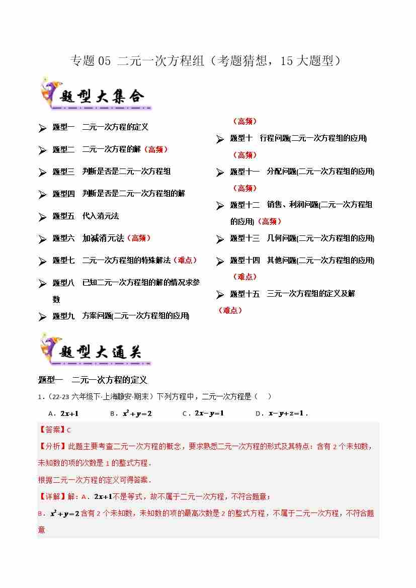 专题05 二元一次方程组(考题猜想15大题型)(教师版)