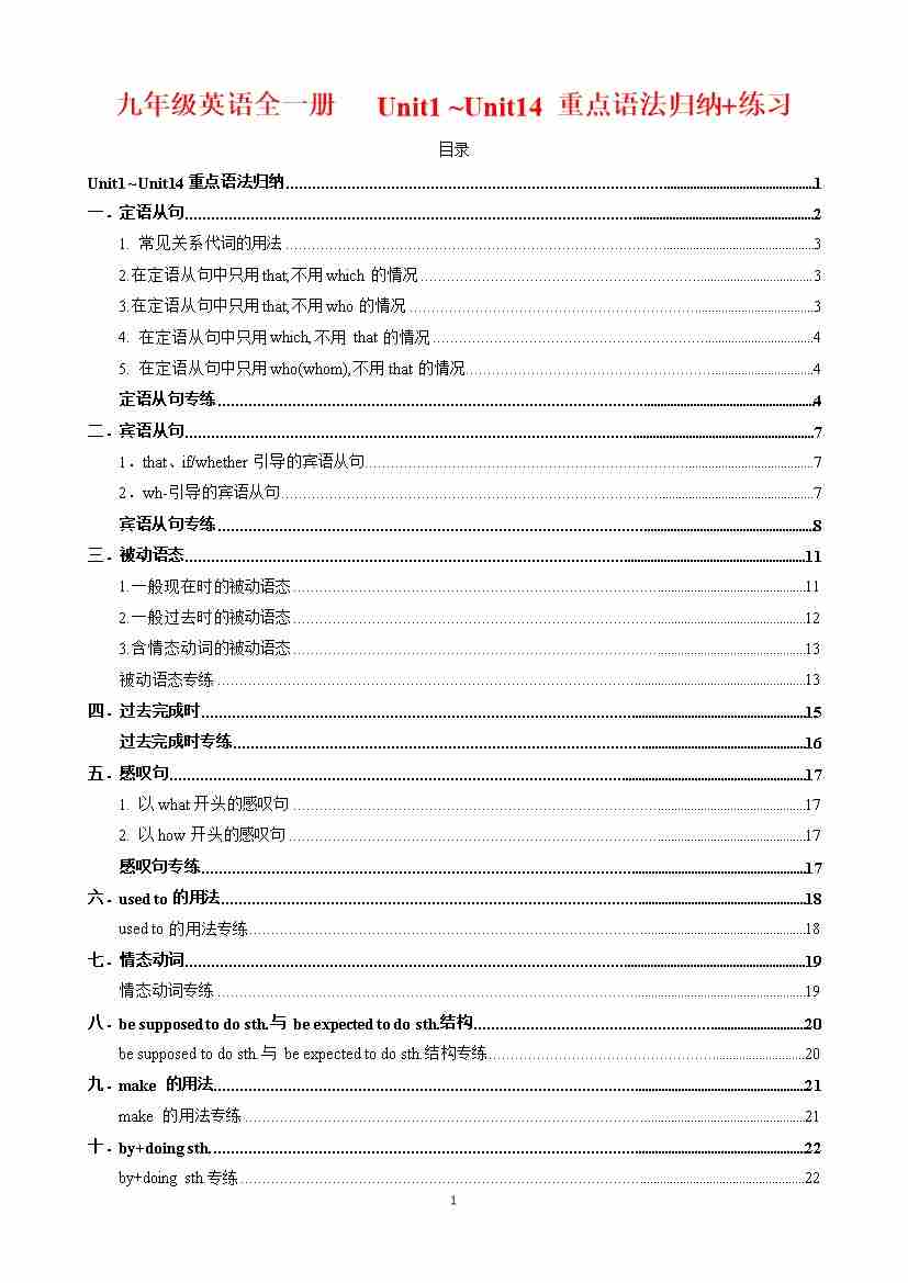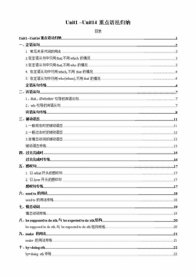 Unit1 ~Unit14重点语法归纳 (默写版)word