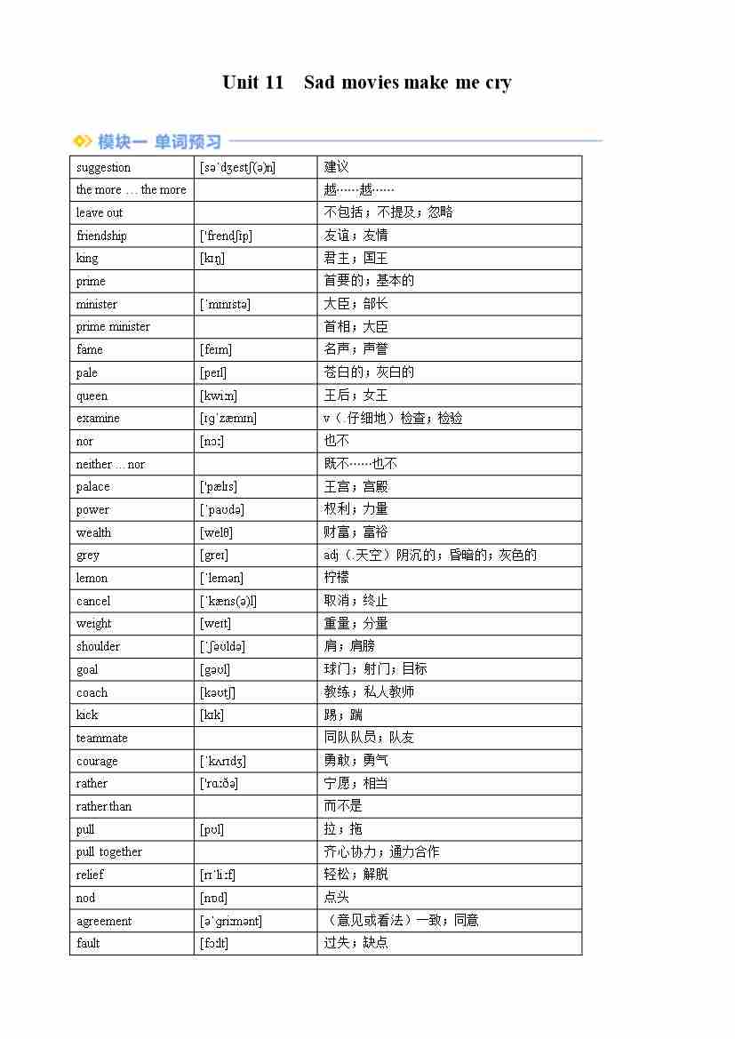 专题01 Unit 11 Sad movies make me cry(解析版)
