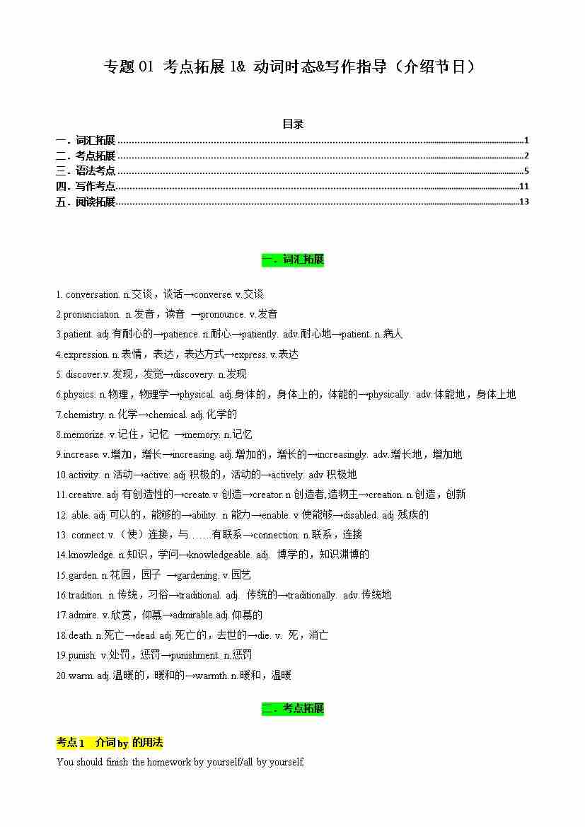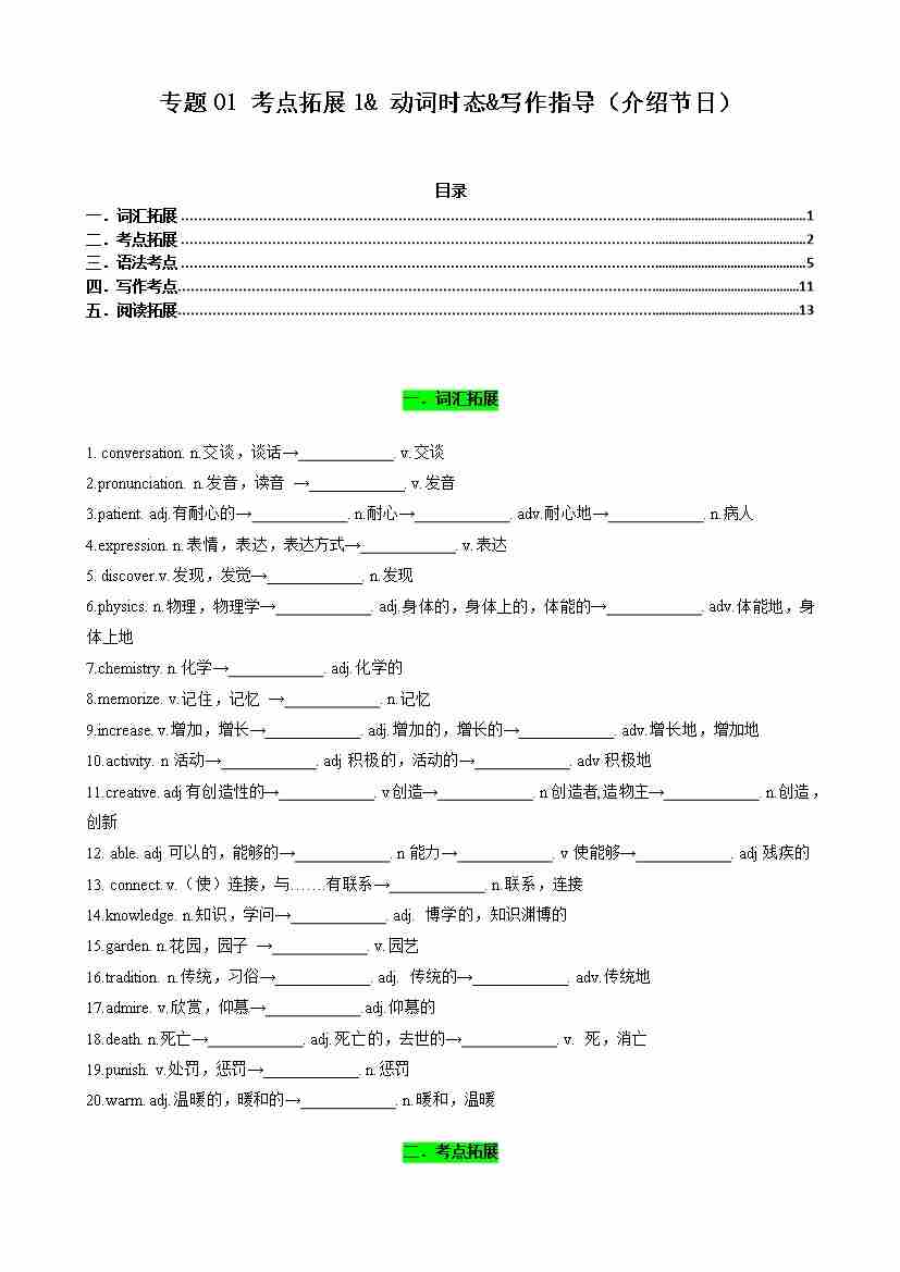 专题01 考点拓展1& 动词时态&写作指导(介绍节日)(解析版)