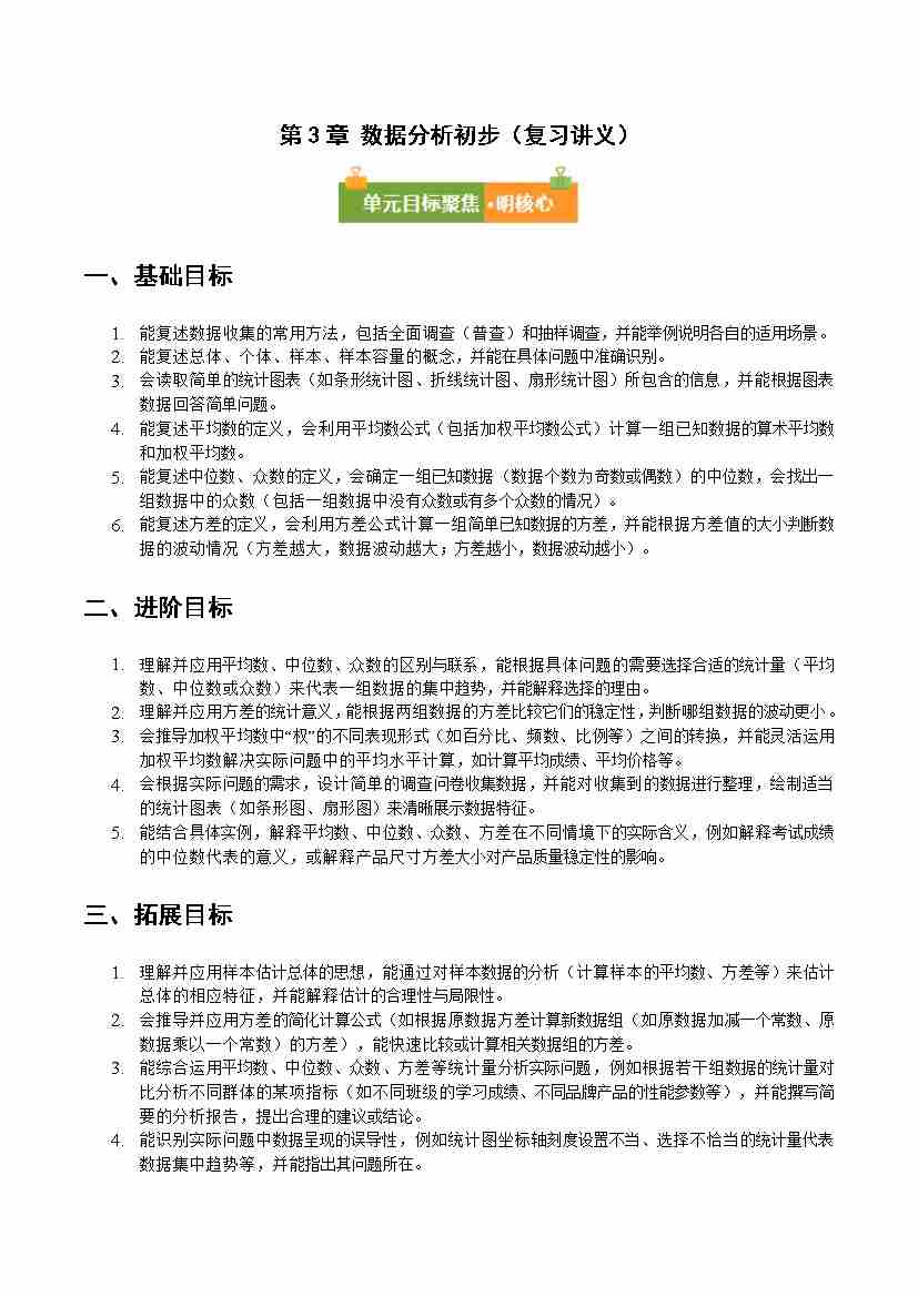 八下数学第3章 数据分析初步·基础卷(试题版A4)