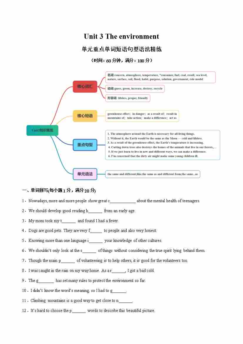 Unit 3 The environment 单词短语句型语法(教材考点精练)(原卷版)