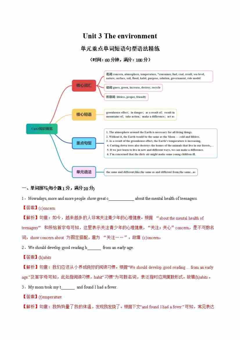 Unit 3 The environment 单词短语句型语法(教材考点精练)(解析版)