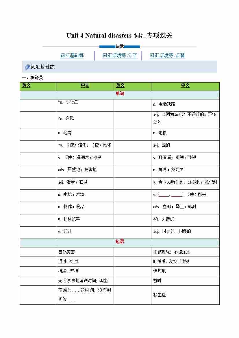 Unit 4 Natural disasters(重难词汇精炼)(原卷版)