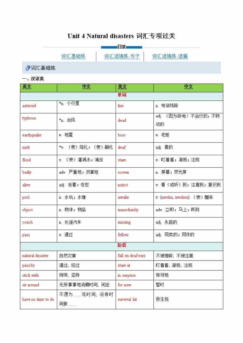 Unit 4 Natural disasters(重难词汇精炼)(解析版)