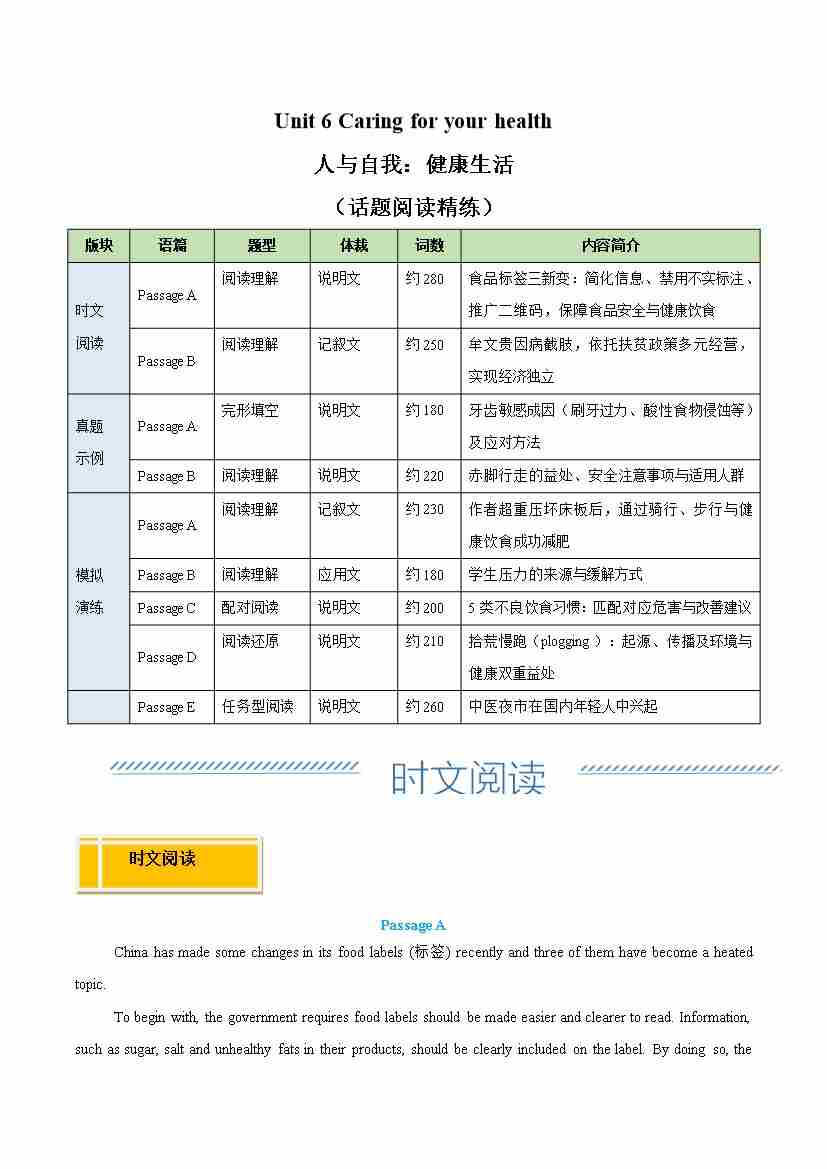 Unit 6 Caring for your health 人与自我:健康生活(话题阅读精练)(解析版)