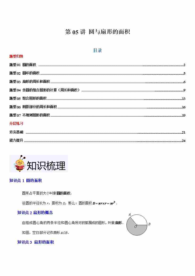 第05讲 圆与扇形的面积(4大知识点7种题型分层练习)原卷版