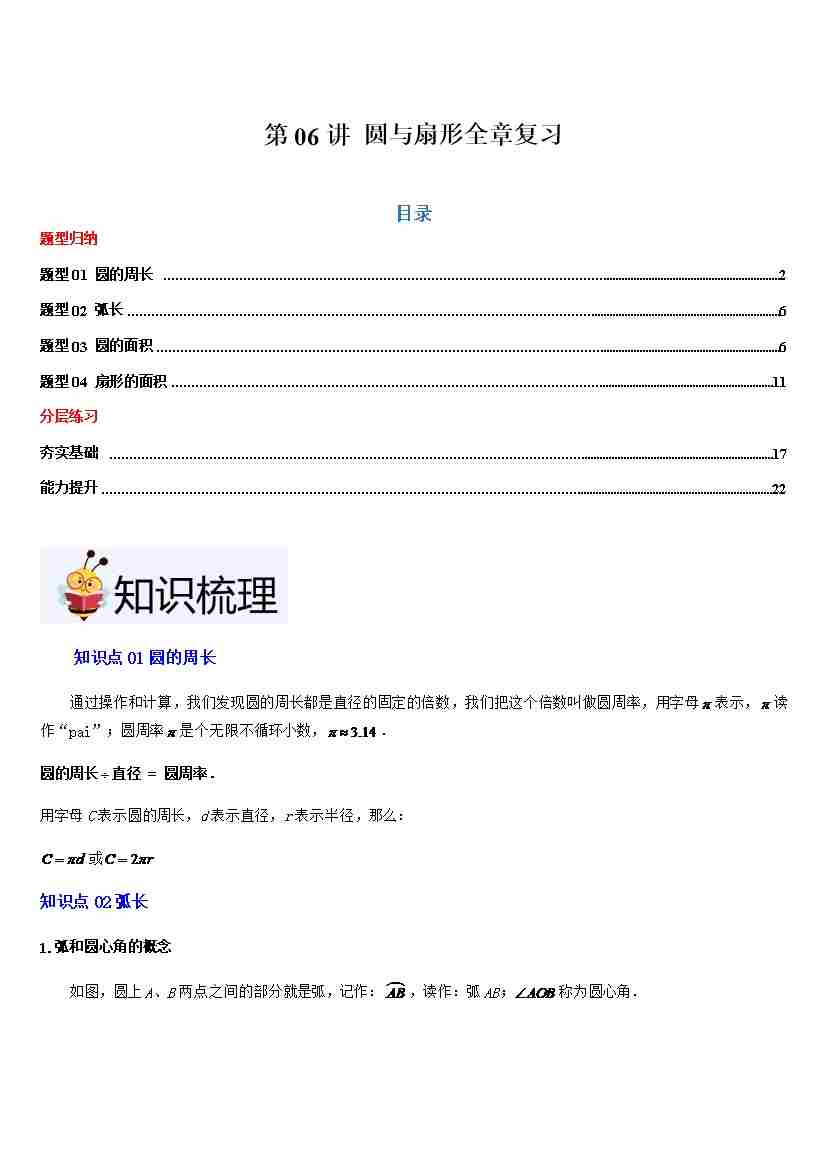 第06讲 圆与扇形全章复习(5大知识点4种题型分层练习)原卷版