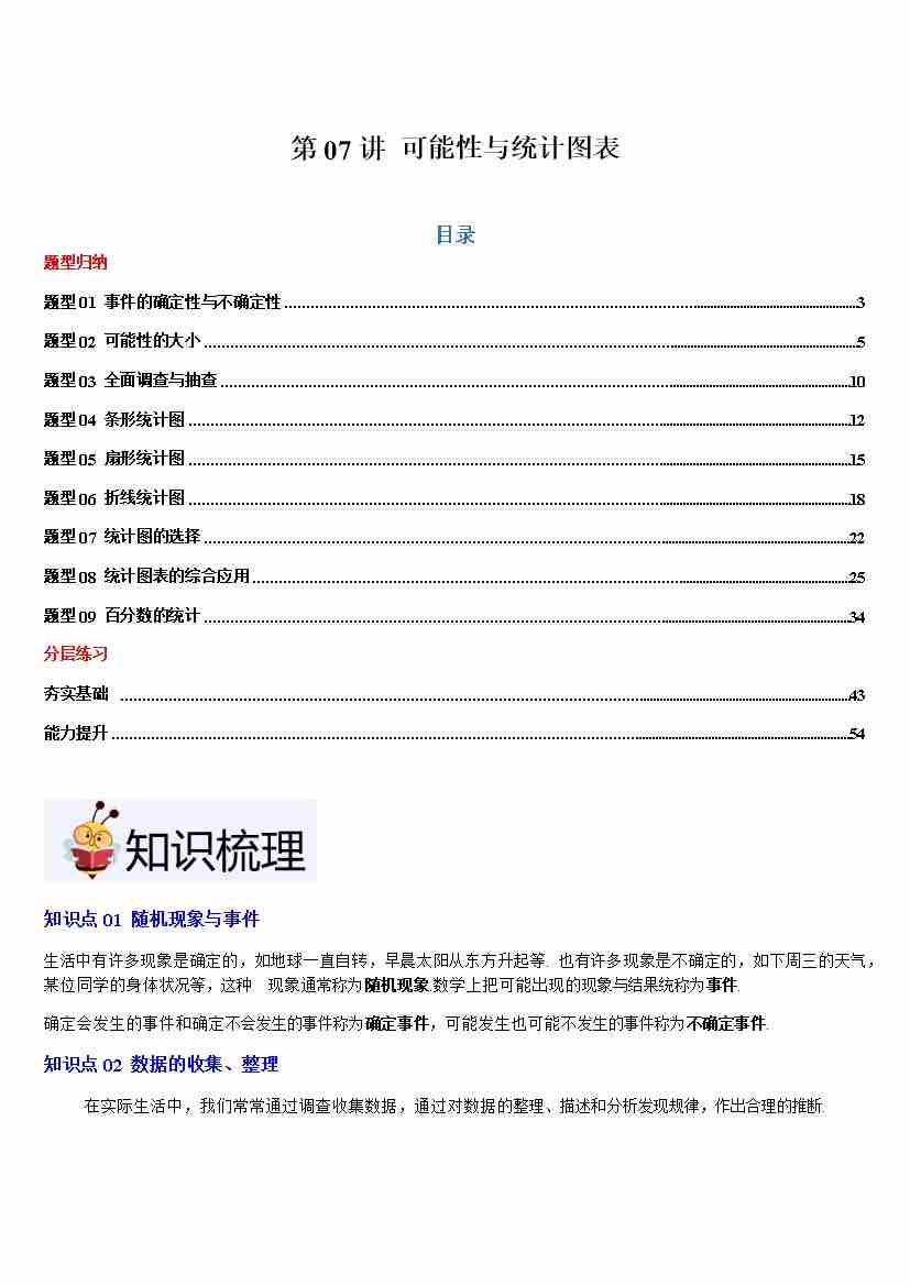 第07讲 可能性与统计图表(5大知识点9大题型分层练习)原卷版